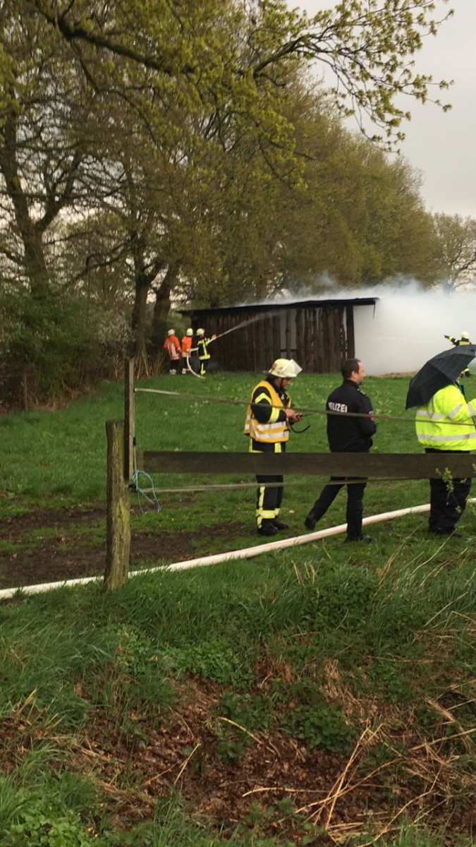 Heute um 15:47 Uhr wurde die Feuerwehr Lüdersburg im Rahmen des Zugalarms zu einem Schuppenbrand nach Echem alarmiert. Gemeinsam mit den Kameraden aus Echem und Jürgenstorf wurde der Einsatz zügig abgearbeitet. Nach rund 30 Minuten war der Einsatz für die Freiwillige Feuerwehr Lüdersburg beendet.